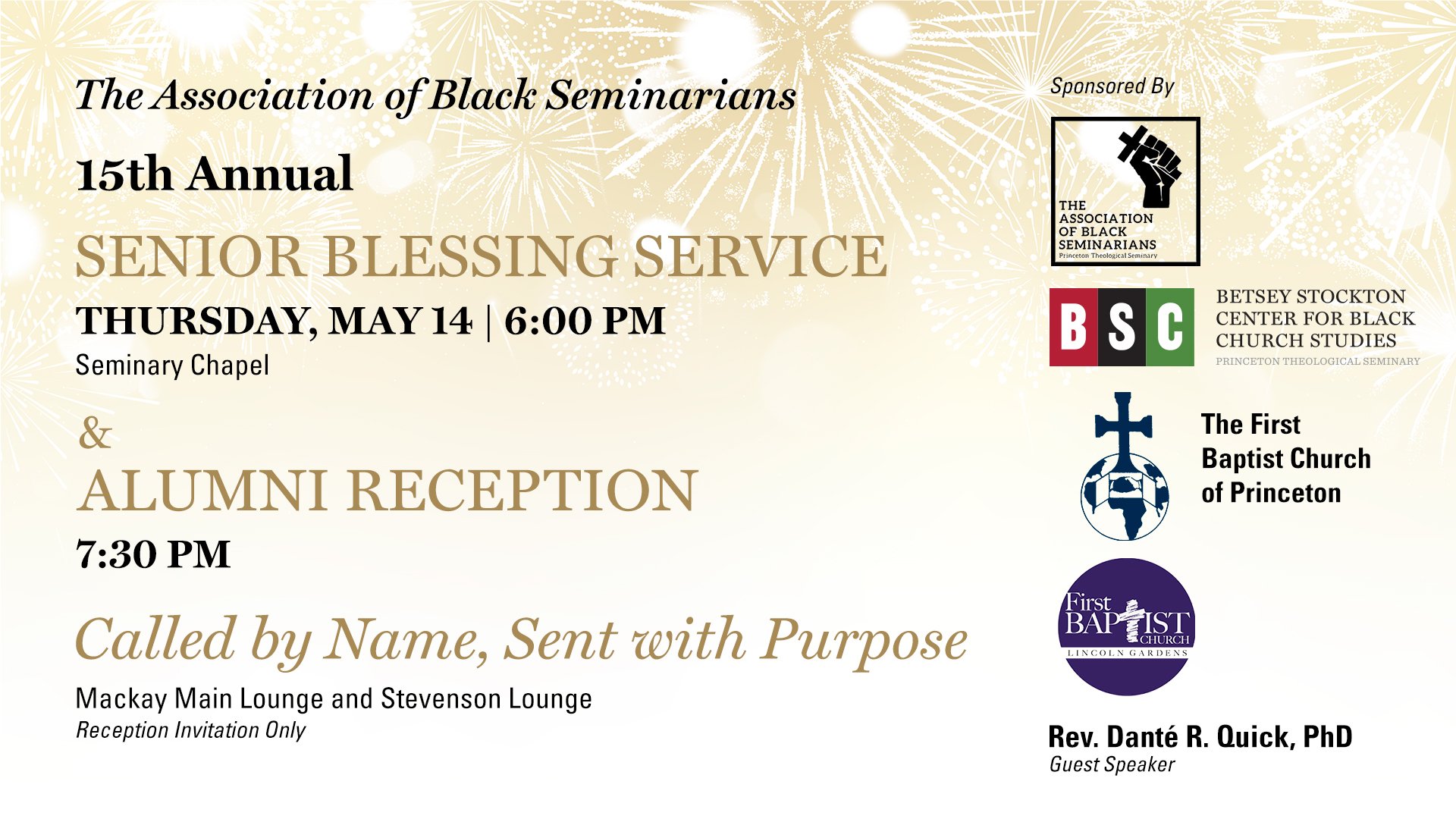 The Association of Black Seminarians (ABS), in partnership with the Betsey Stockton Center for Black Church Studies (BSC), hosts the 15th Annual Senior Blessing and Alumni Reception, a cherished tradition at Princeton Theological Seminary celebrating the journey and legacy of Black students and alumni. This year’s theme, “Called By Name, Sent With Purpose,” highlights God’s faithful calling and the continued work of ministry beyond seminary. The ceremonial blessing honors graduating students of African descent, celebrating their achievements, covering them in prayer, and sending them forth with love and encouragement as they enter the next stage of their calling and ministry. Grounded in Psalm 118:24 (NIV) — “The Lord has done it this very day; let us rejoice today and be glad.” — the service will feature a message from guest preacher Rev. Dr. Danté R. Quick, Senior Pastor of First Baptist Church of Lincoln Gardens in Somerset, New Jersey. The celebration will conclude with an Alumni Reception, fostering fellowship and connection between current students, Black alumni, and guests.